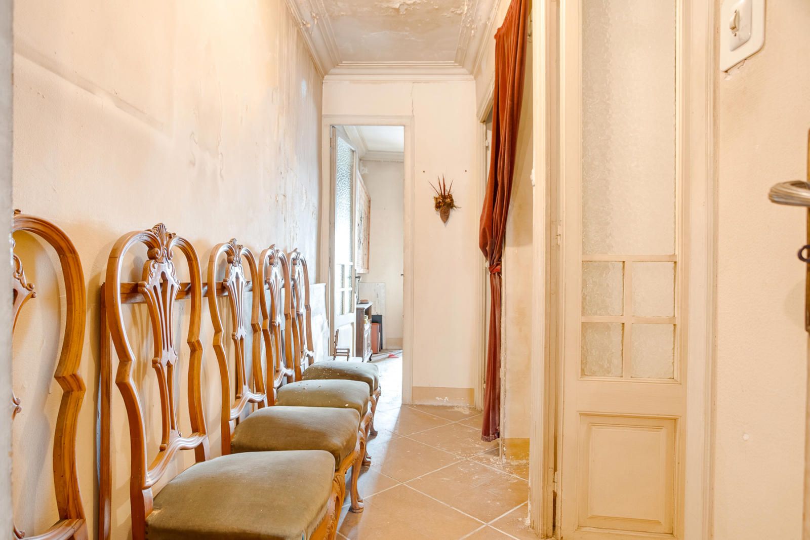 Actualment, l’habitatge es troba per reformar, fet que el converteix en una excel·lent oportunitat per a inversors. Disposa de dues cuines, cinc habitacions, tres banys, traster i plaça d’aparcament, així com de diverses terrasses. Tots els espais són totalment exteriors, amb una magnífica entrada de llum natural durant tot el dia, cosa que garanteix un habitatge molt assolellat.