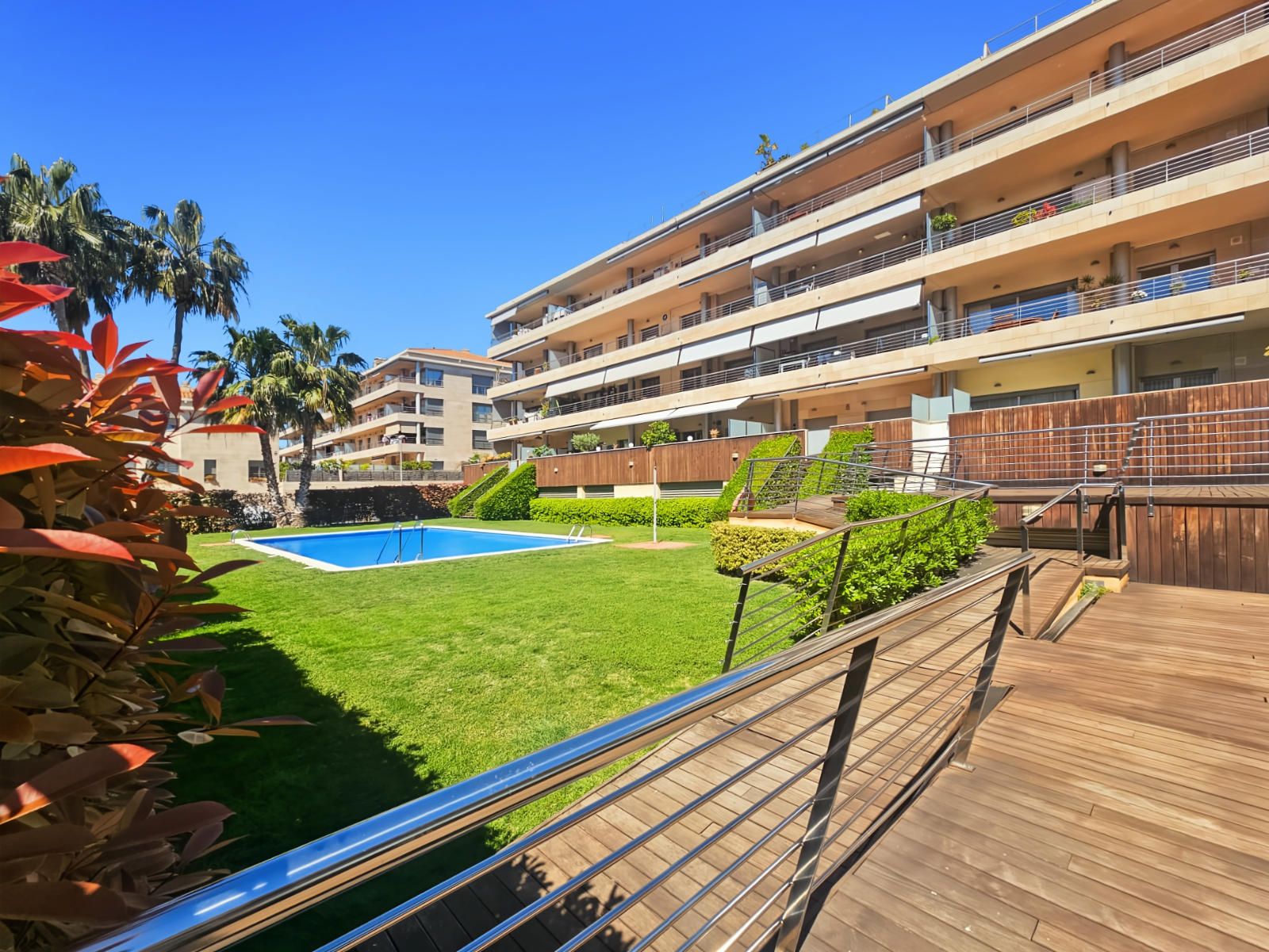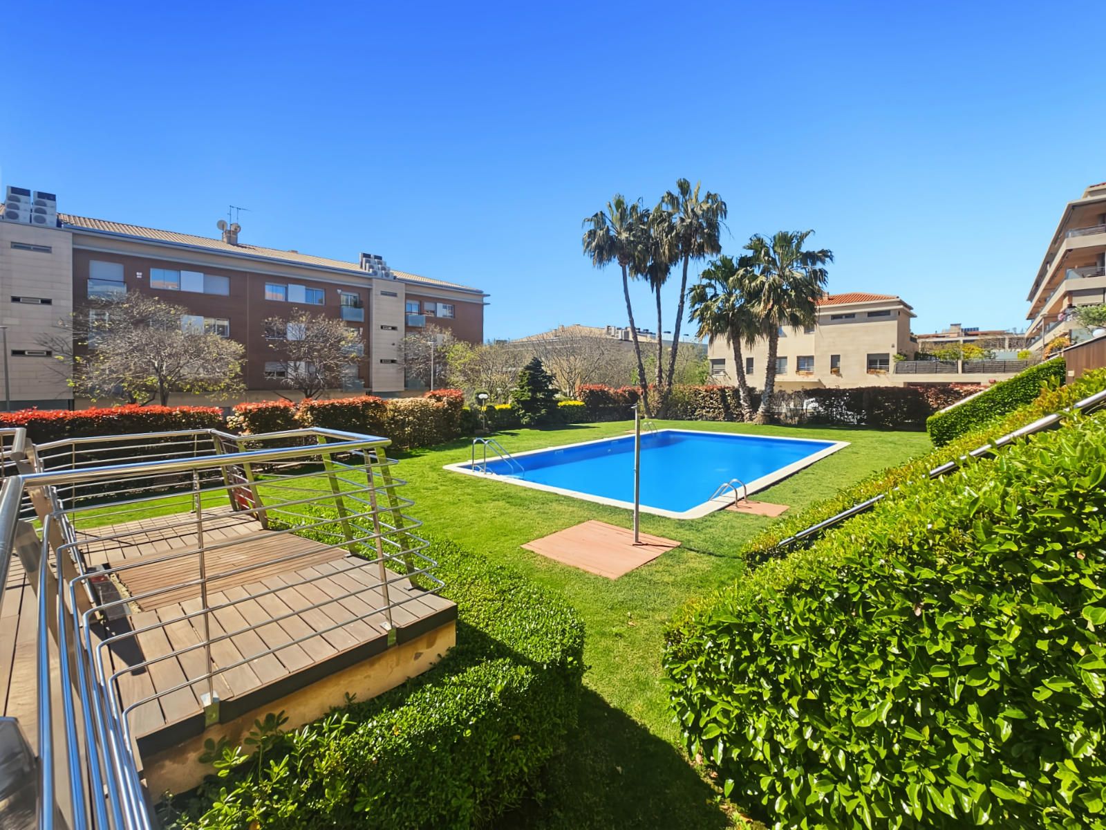 Descobreix aquest magnífic pis situat en una finca moderna de l'any 2005, amb ascensor i tan sols 8 veïns, la qual cosa garanteix tranquil·litat i privacitat. La propietat destaca per la seva encantadora zona comunitària amb cura gespa natural i una àmplia piscina, ideal per a gaudir en família.