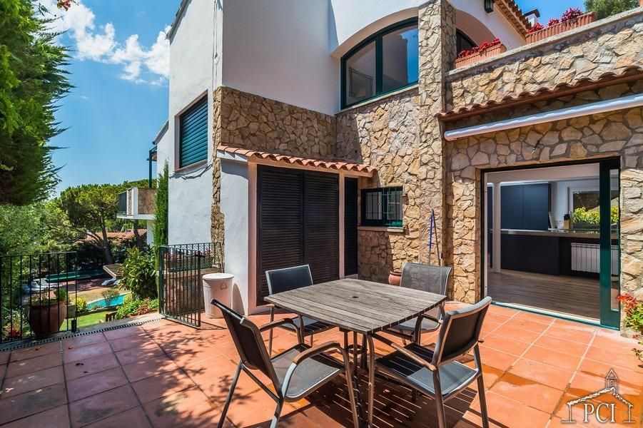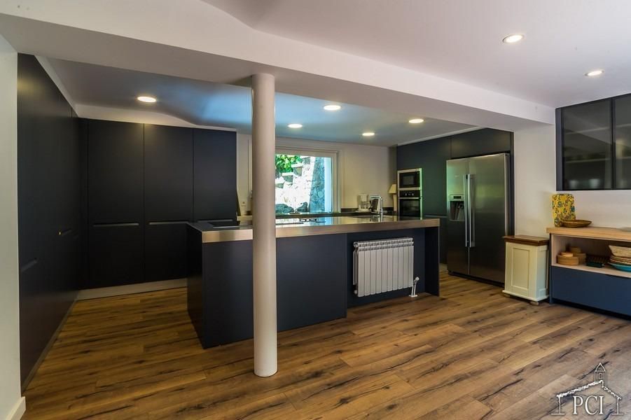 La reforma de la cuina d'aquesta casa ha estat espectacular i molt meditada a l'hora d'escollir el mobiliari i els electrodomèstics, tots moderns, funcionals i d'alta gamma: nevera americana, campana integrada a la placa, amb zona de treball d'acer inoxidable, disseny en l'emmagatzematge del mobiliari, i una àmplia zona de menjador per al gaudi d'aquesta zona. Amb uns amplis finestrals per recrear un ambient natural. Sortida a una bonica terrassa des de la qual s'accedeix a les escales que porten a la piscina.