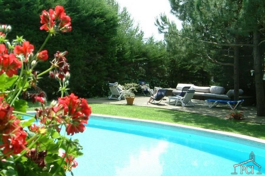 Exteriors amb un bonic jardí que envolta la piscina i una zona de descans amb tarima. Terrassa-porxo amb cuina d'estiu equipada, bany amb dutxa.