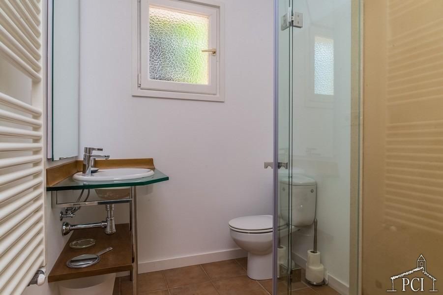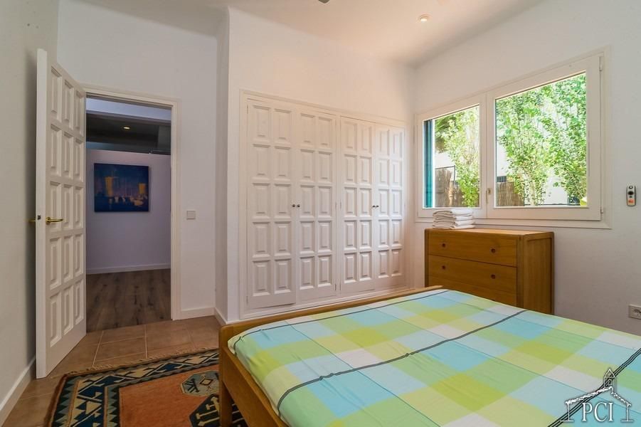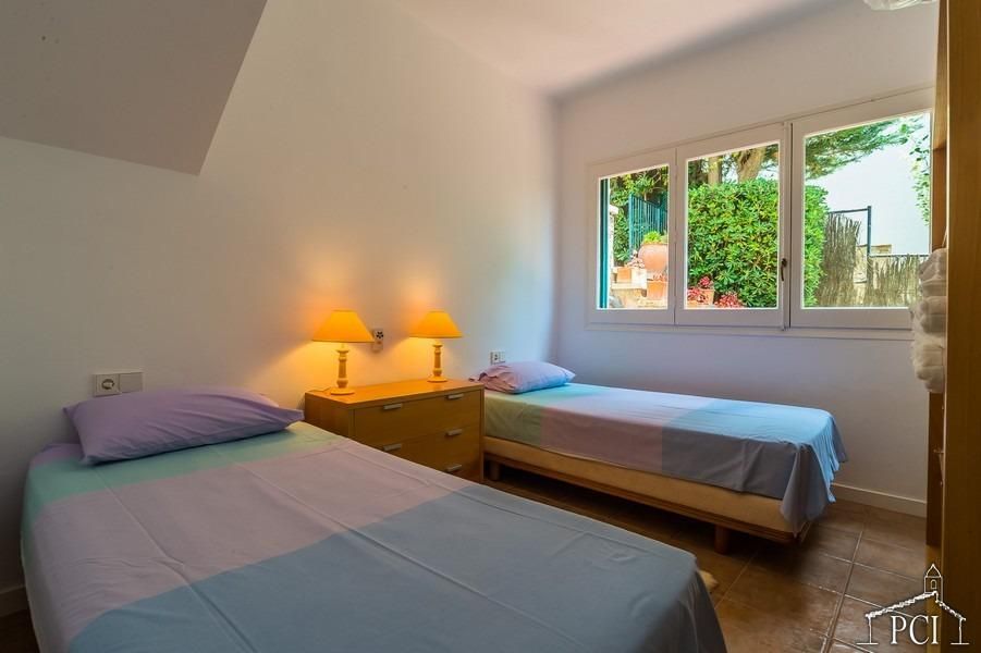 A la planta de baix s'accedeix per dues escales, una d'elles porta a la zona de les habitacions i l'altra directament a la cuina. La casa consta d'una suite amb armaris encastats i bany modern amb dutxa, 2 dormitoris dobles, 1 bany/dutxa, 1 dormitori amb lliteres i bany/dutxa, el qual té sortida directa al jardí.