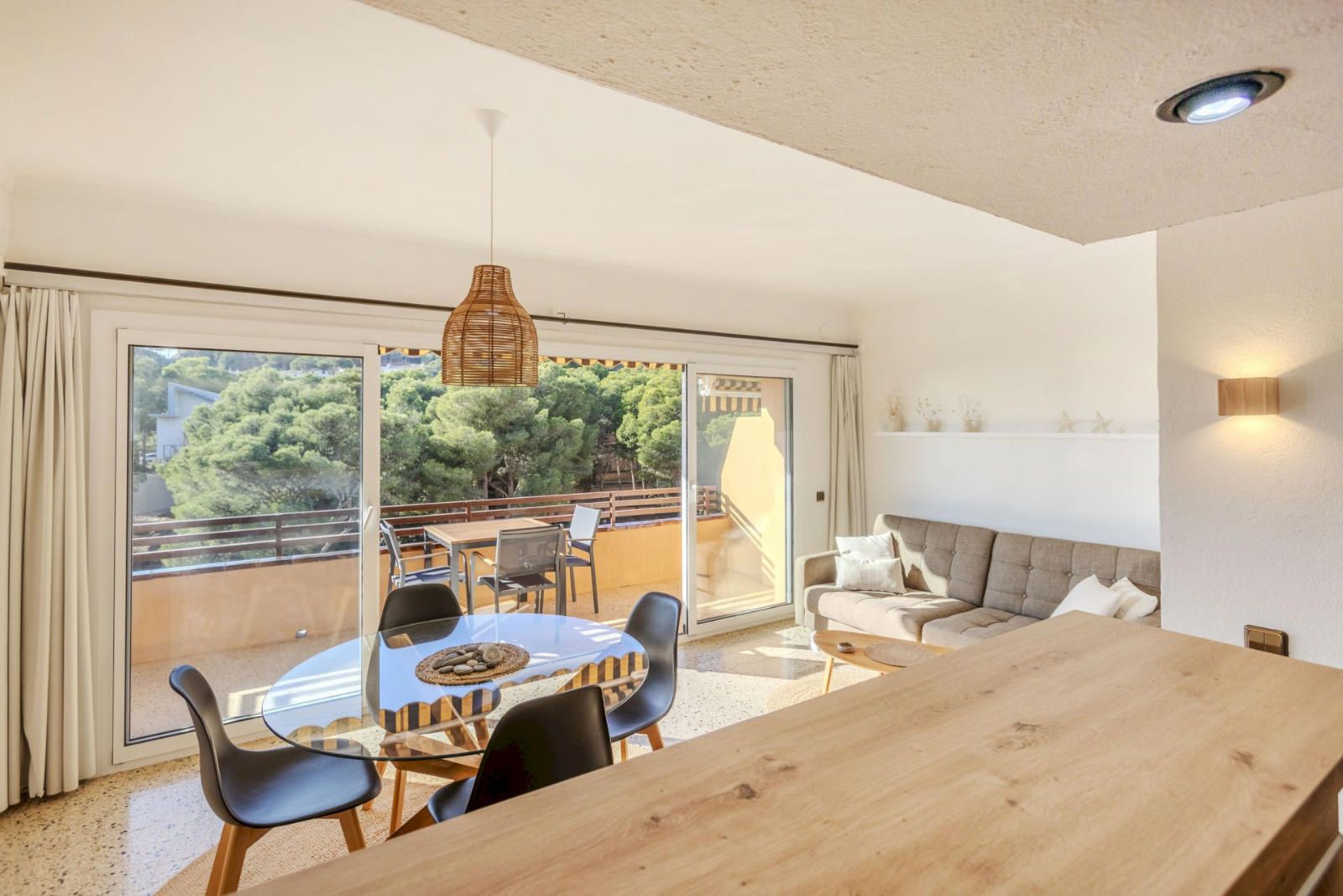 Ubicado en una segunda planta, ofrece 70 m² construidos (59 m² útiles) distribuidos con sentido y bañados por la luz gracias a su orientación suroeste. El salón se abre a una terraza de 8 m², perfecta para desayunar sin prisa o terminar el día con la brisa suave de la Costa Brava.