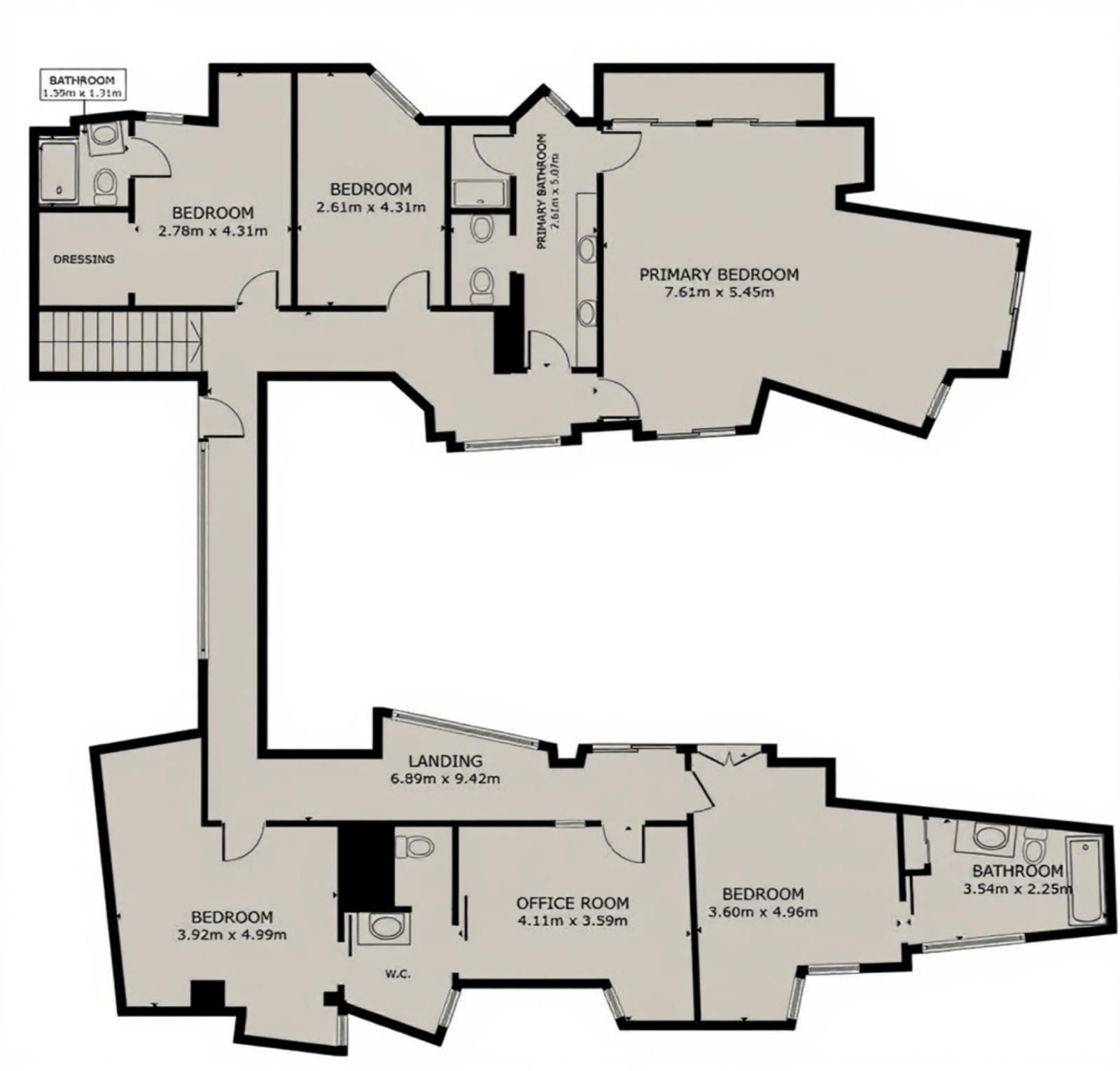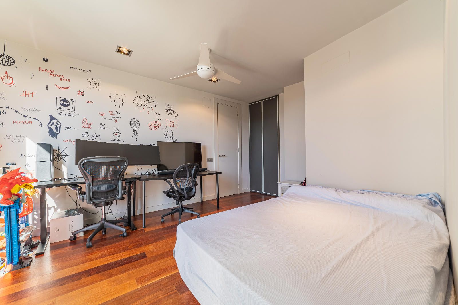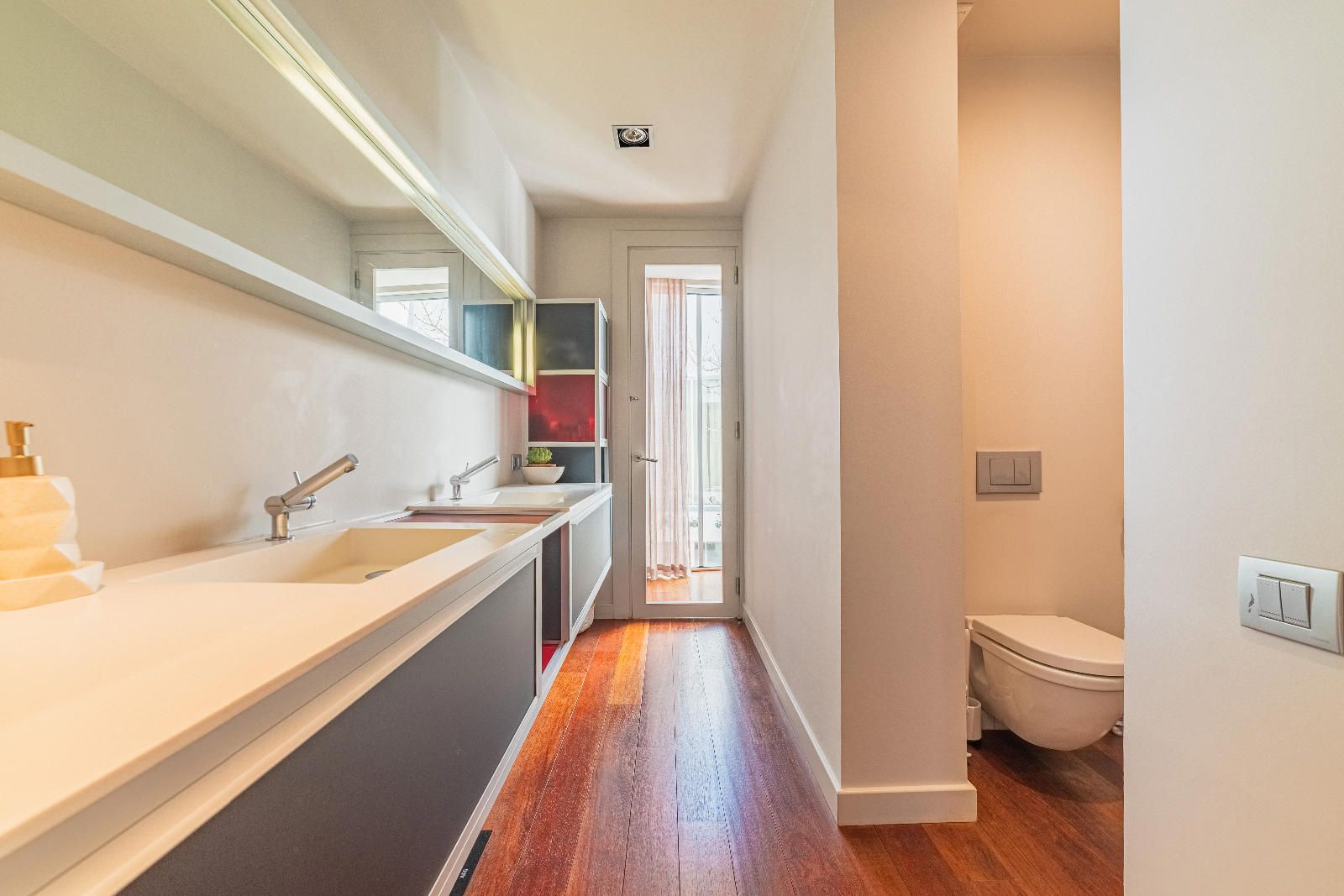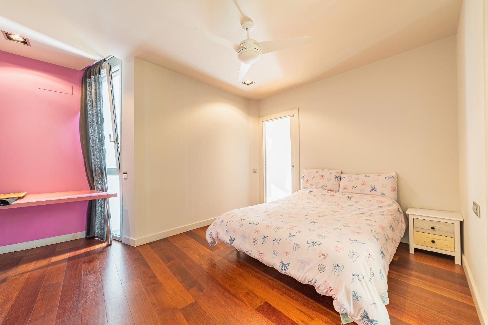 À l’étage se trouve la zone nuit. Deux bureaux — dont un avec salle de bain complète — offrent des espaces idéaux pour le télétravail. La suite parentale dispose d’une terrasse privée avec vue sur la piscine et l’environnement naturel de Collserola. De l’autre côté, deux chambres doubles et une suite supplémentaire complètent une distribution confortable et harmonieuse.